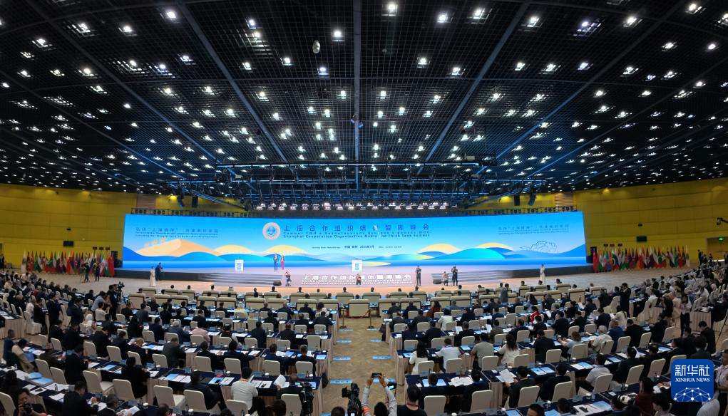 這是7月25日拍攝的上海合作組織媒體智庫(kù)峰會(huì)全體會(huì)議現(xiàn)場(chǎng)。新華社記者 高潔 攝