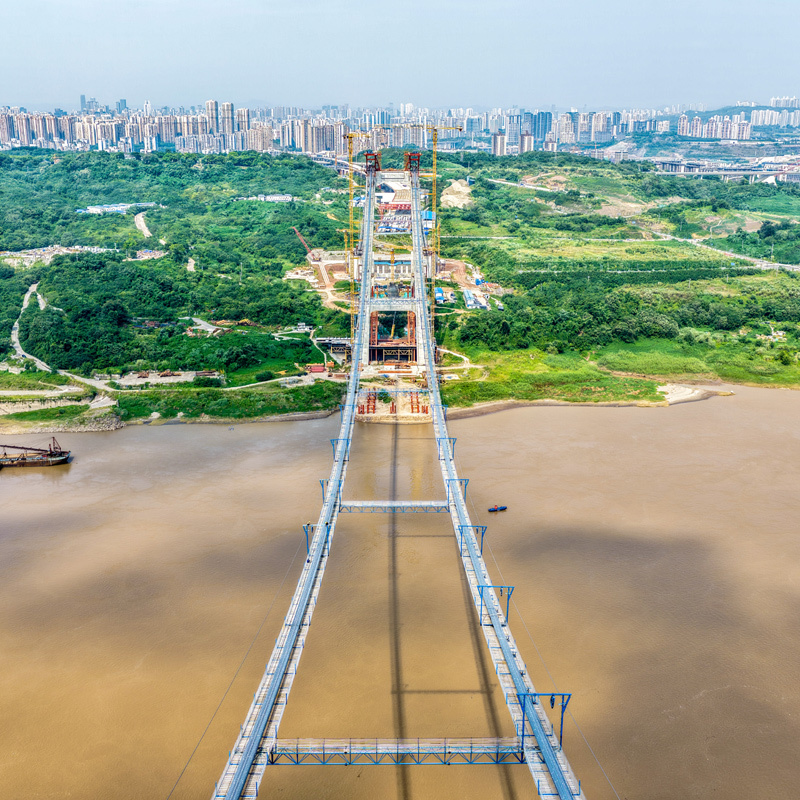 當(dāng)日,由重慶城投集團投資、城投建設(shè)公司組織建設(shè)、中國鐵建大橋局承建的黃桷沱長江大橋順利完成主纜架設(shè)工作,標(biāo)志著大橋建設(shè)即將進入鋼桁梁吊裝工序。黃桷沱長江大橋全長1260米,主跨765米,為單跨懸吊雙塔三跨連續(xù)鋼桁梁懸索橋,是國內(nèi)最大跨徑公軌兩用懸索橋。黃桷沱長江大橋是渝長高速復(fù)線連接道工程的控制性節(jié)點工程,建成后將成為聯(lián)系重慶主城區(qū)長江南北兩岸的重要交通干道。