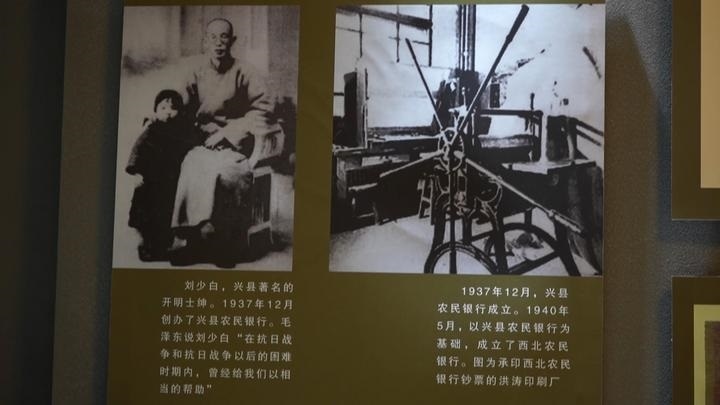 講解員張英告訴記者,為了更貼近百姓,與閻錫山的晉鈔區(qū)分開(kāi)來(lái),所以取名叫興縣農(nóng)民銀行。“在(興縣)農(nóng)民銀行的基礎(chǔ)上,我們又成立了西北農(nóng)民銀行。西北農(nóng)民銀行當(dāng)時(shí)的主要工作就是印鈔。我們看到的這個(gè)就是當(dāng)時(shí)建立的洪濤印刷廠,當(dāng)時(shí)洪濤印刷廠的工作也非常多,從1940年成立到1949年1月,一共印的鈔票價(jià)值是3.8億元。1940年5月10日,我們?cè)谂d縣孫家大院舉辦了開(kāi)業(yè)大禮,從此西北農(nóng)民銀行誕生,之后在1948年12月份,西北農(nóng)民銀行、華北銀行、北海銀行合并,組建了中國(guó)人民銀行,至此,西北農(nóng)民銀行完成了它的歷史使命?!彼f(shuō)。