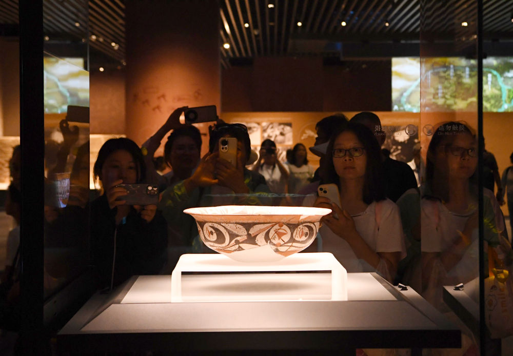 2025年7月24日,上海合作組織媒體智庫峰會子活動“文化遺產(chǎn)保護利用交流合作會”的參會嘉賓在鄭州大河村遺址博物館新館參觀。新華社記者 李嘉南 攝