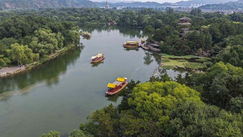 8月12日,游客在河北省承德市避暑山莊景區(qū)游玩觀景(無(wú)人機(jī)照片)。
