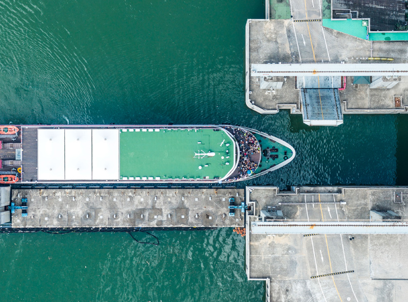 8月16日,在湖北省宜昌市,船舶有序通過三峽雙線五級船閘和三峽升船機(無人機照片)。