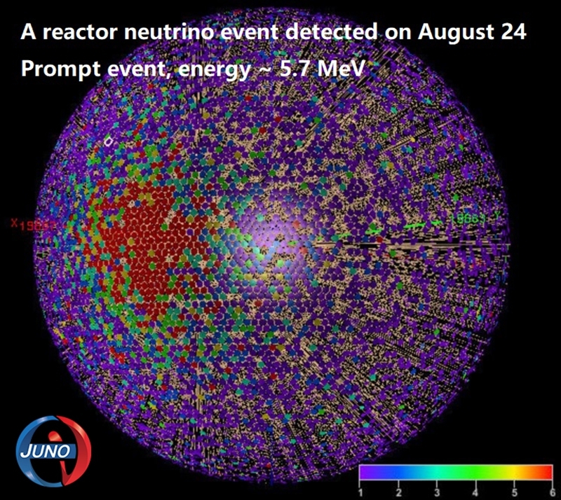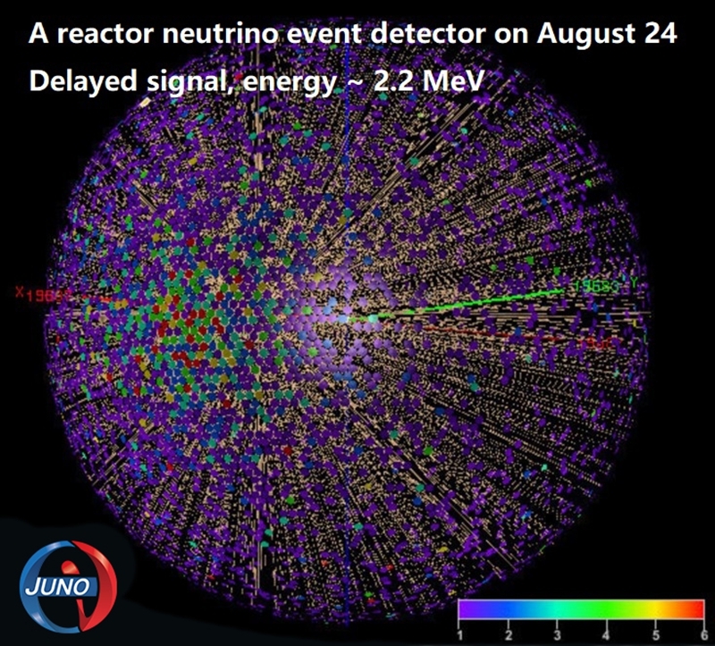 這是8月24日江門中微子實(shí)驗(yàn)探測到的一個(gè)反應(yīng)堆中微子事例示意圖。