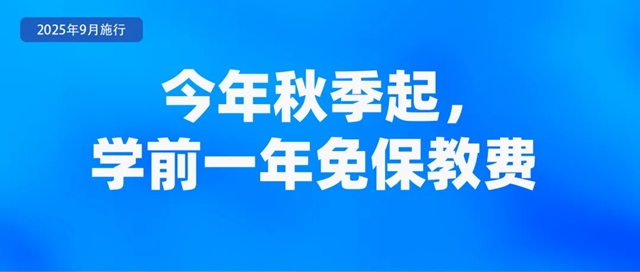 國務(wù)院辦公廳印發(fā)《關(guān)于逐步推行免費(fèi)學(xué)前教育的意見》。從2025年秋季學(xué)期起,免除公辦幼兒園學(xué)前一年在園兒童保育教育費(fèi)。對(duì)在教育部門批準(zhǔn)設(shè)立的民辦幼兒園就讀的適齡兒童,參照當(dāng)?shù)赝愋凸k幼兒園免除水平,相應(yīng)減免保育教育費(fèi)。財(cái)政部、教育部將統(tǒng)籌考慮學(xué)齡人口變化、財(cái)力狀況等因素,研究適時(shí)完善免費(fèi)學(xué)前教育政策。西藏,四川、云南、甘肅、青海四省涉藏州縣,新疆喀什、和田、阿克蘇、克孜勒蘇柯爾克孜四地州等地區(qū)在園兒童繼續(xù)執(zhí)行現(xiàn)行政策。