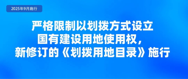 新修訂的《劃撥用地目錄》自2025年9月1日起施行。新修訂《目錄》明確,嚴(yán)格限制以劃撥方式設(shè)立國有建設(shè)用地使用權(quán)。符合本《目錄》,確需以劃撥方式使用土地的,由建設(shè)單位提出申請(qǐng),經(jīng)有批準(zhǔn)權(quán)的人民政府批準(zhǔn),方可以劃撥方式提供;建設(shè)單位提出或者同意以有償方式使用土地的,應(yīng)當(dāng)依法采取出讓、租賃等方式提供。
