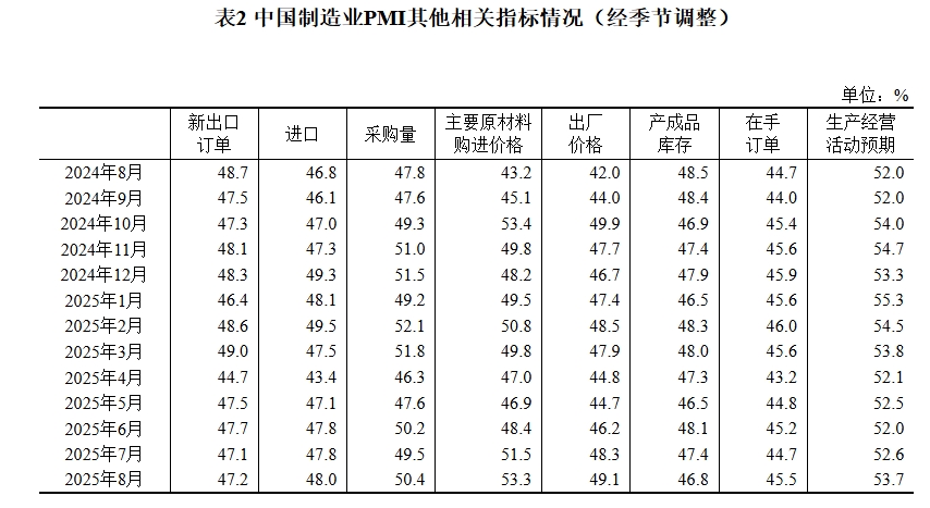 據(jù)國家統(tǒng)計(jì)局網(wǎng)站消息,國家統(tǒng)計(jì)局8月31日發(fā)布2025年8月中國采購經(jīng)理指數(shù)運(yùn)行情況。