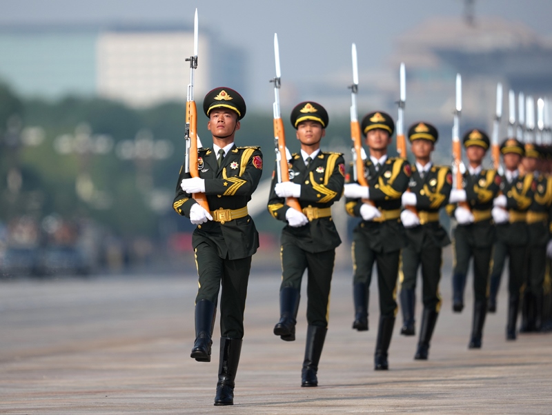 9月3日,紀(jì)念中國人民抗日戰(zhàn)爭暨世界反法西斯戰(zhàn)爭勝利80周年大會在北京隆重舉行。這是標(biāo)兵就位。