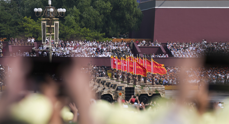 9月3日,紀(jì)念中國人民抗日戰(zhàn)爭暨世界反法西斯戰(zhàn)爭勝利80周年大會在北京隆重舉行。這是徒步方隊通過天安門廣場。