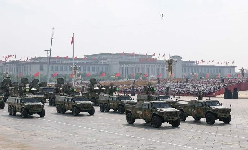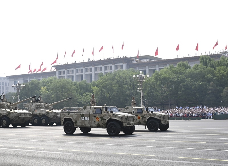 9月3日,紀(jì)念中國(guó)人民抗日戰(zhàn)爭(zhēng)暨世界反法西斯戰(zhàn)爭(zhēng)勝利80周年大會(huì)在北京隆重舉行。這是信息支援方隊(duì)通過天安門廣場(chǎng)。