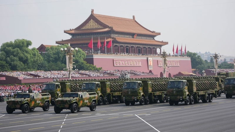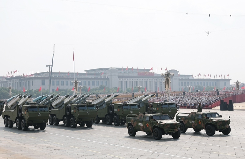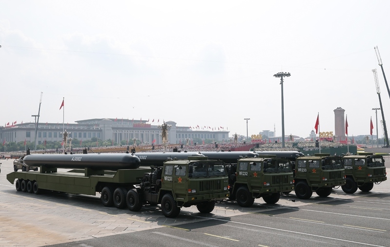 9月3日,紀(jì)念中國(guó)人民抗日戰(zhàn)爭(zhēng)暨世界反法西斯戰(zhàn)爭(zhēng)勝利80周年大會(huì)在北京隆重舉行。這是高超聲速導(dǎo)彈方隊(duì)接受檢閱。