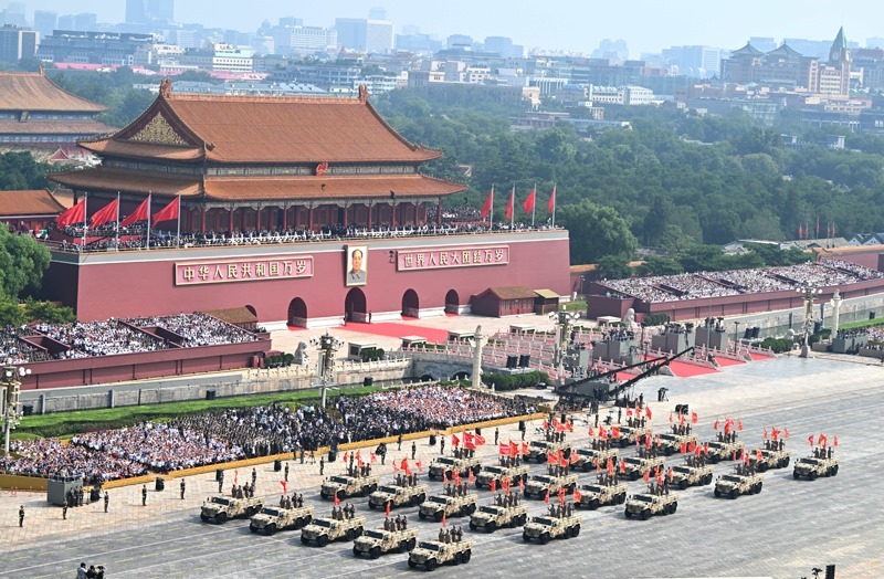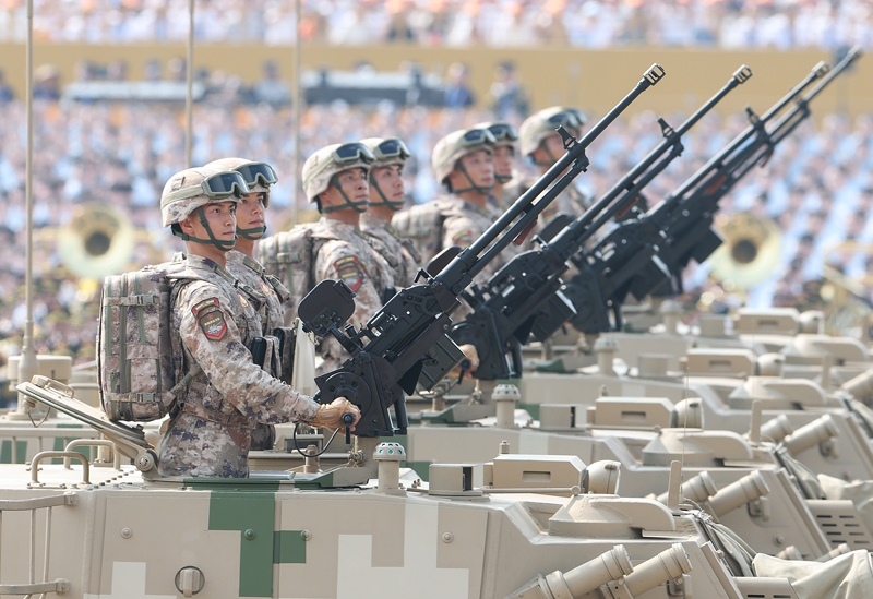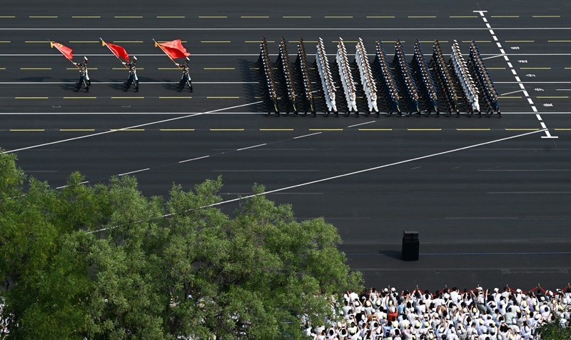 9月3日,紀(jì)念中國(guó)人民抗日戰(zhàn)爭(zhēng)暨世界反法西斯戰(zhàn)爭(zhēng)勝利80周年大會(huì)在北京隆重舉行。這是徒步方隊(duì)接受檢閱。