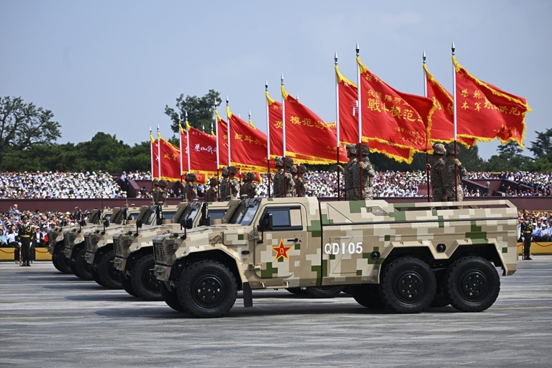 9月3日,紀(jì)念中國(guó)人民抗日戰(zhàn)爭(zhēng)暨世界反法西斯戰(zhàn)爭(zhēng)勝利80周年大會(huì)在北京隆重舉行。這是裝備保障方隊(duì)接受檢閱。