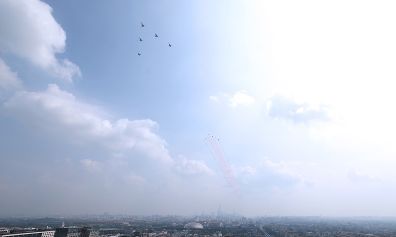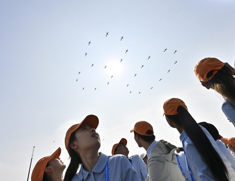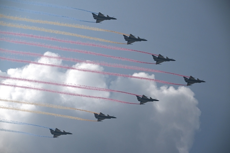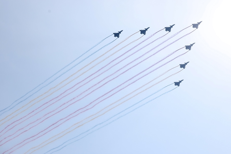 9月3日,紀(jì)念中國(guó)人民抗日戰(zhàn)爭(zhēng)暨世界反法西斯戰(zhàn)爭(zhēng)勝利80周年大會(huì)在北京隆重舉行。這是空中梯隊(duì)接受檢閱。