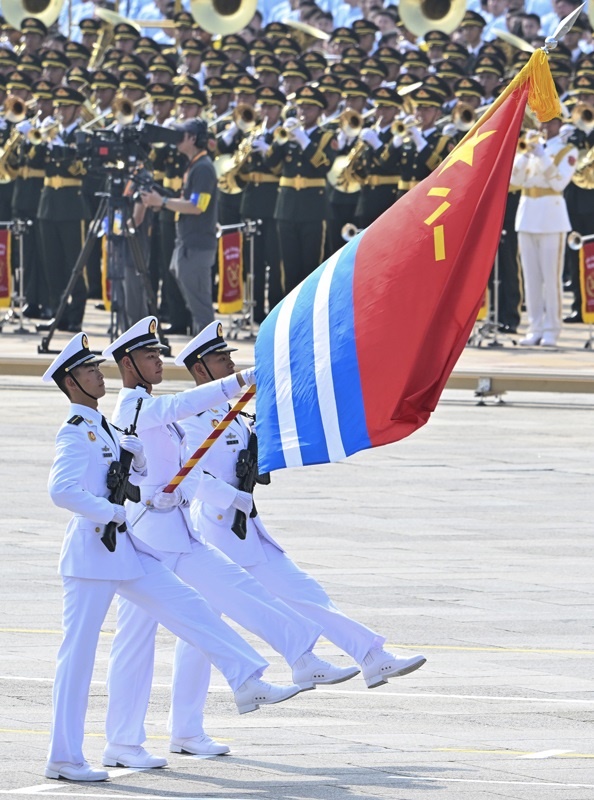 9月3日,紀(jì)念中國(guó)人民抗日戰(zhàn)爭(zhēng)暨世界反法西斯戰(zhàn)爭(zhēng)勝利80周年大會(huì)在北京隆重舉行。這是海軍方隊(duì)通過天安門廣場(chǎng)。