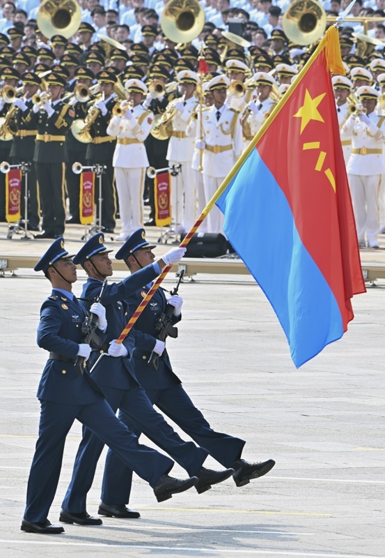 9月3日,紀(jì)念中國(guó)人民抗日戰(zhàn)爭(zhēng)暨世界反法西斯戰(zhàn)爭(zhēng)勝利80周年大會(huì)在北京隆重舉行。這是空軍方隊(duì)接受檢閱。