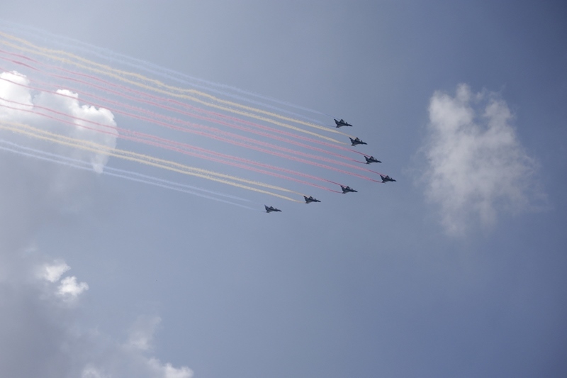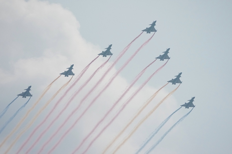 9月3日,紀(jì)念中國(guó)人民抗日戰(zhàn)爭(zhēng)暨世界反法西斯戰(zhàn)爭(zhēng)勝利80周年大會(huì)在北京隆重舉行。這是教練機(jī)梯隊(duì)接受檢閱。