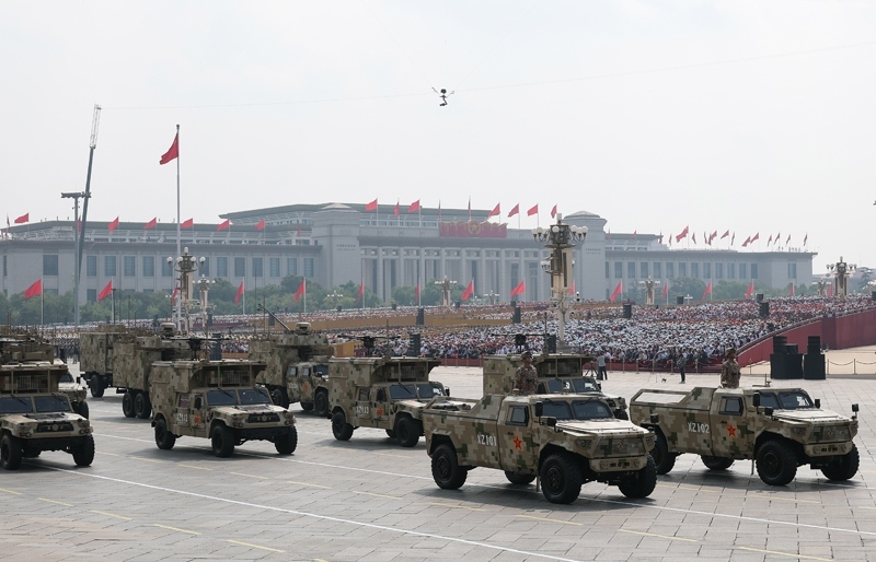 9月3日,紀(jì)念中國(guó)人民抗日戰(zhàn)爭(zhēng)暨世界反法西斯戰(zhàn)爭(zhēng)勝利80周年大會(huì)在北京隆重舉行。這是網(wǎng)絡(luò)空間作戰(zhàn)方隊(duì)接受檢閱。