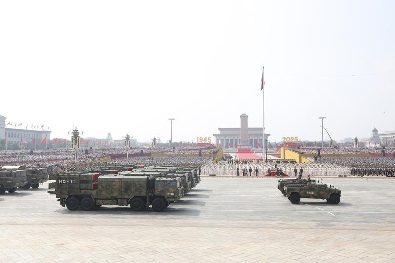 9月3日,紀(jì)念中國人民抗日戰(zhàn)爭暨世界反法西斯戰(zhàn)爭勝利80周年大會(huì)在北京隆重舉行。這是對(duì)空抗擊方隊(duì)接受檢閱。