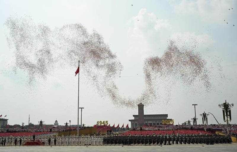 9月3日,紀(jì)念中國人民抗日戰(zhàn)爭暨世界反法西斯戰(zhàn)爭勝利80周年大會(huì)在北京隆重舉行。這是紀(jì)念大會(huì)現(xiàn)場放飛氣球。