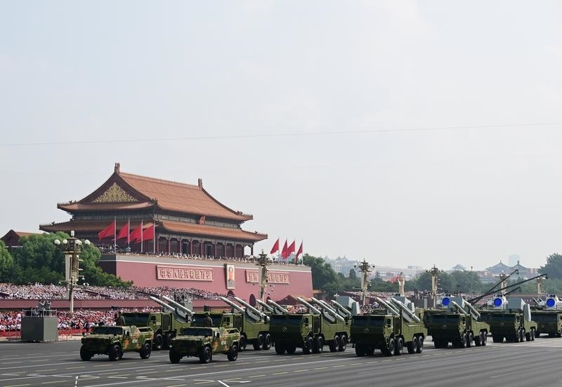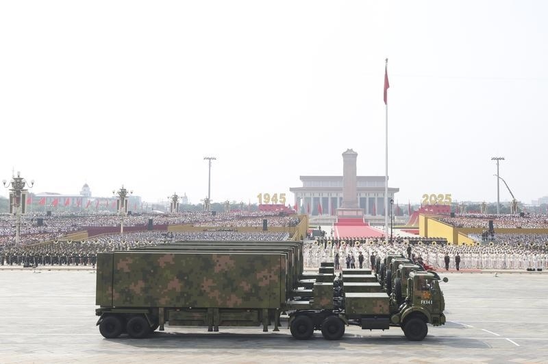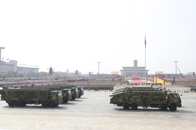 9月3日,紀(jì)念中國人民抗日戰(zhàn)爭暨世界反法西斯戰(zhàn)爭勝利80周年大會(huì)在北京隆重舉行。這是反艦導(dǎo)彈方隊(duì)接受檢閱。