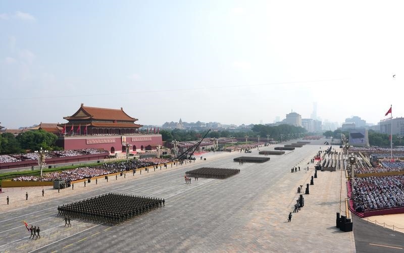9月3日,紀(jì)念中國人民抗日戰(zhàn)爭暨世界反法西斯戰(zhàn)爭勝利80周年大會(huì)在北京隆重舉行。這是徒步方隊(duì)接受檢閱。