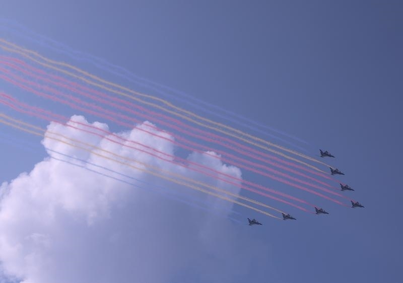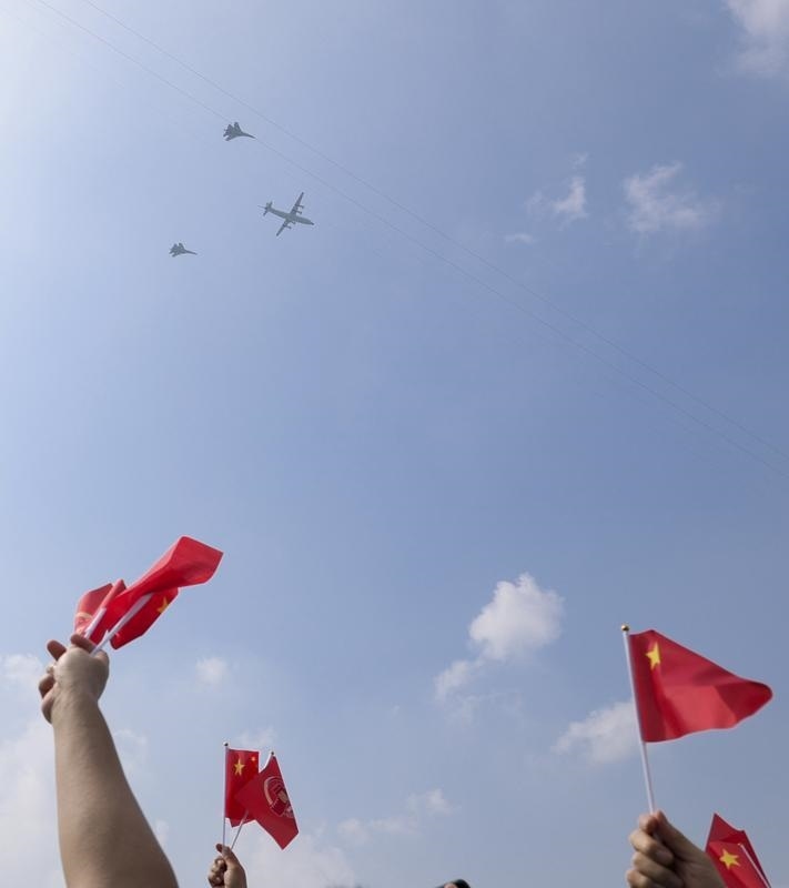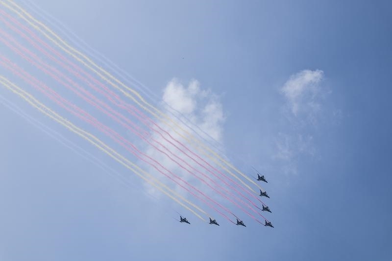 9月3日,紀(jì)念中國人民抗日戰(zhàn)爭暨世界反法西斯戰(zhàn)爭勝利80周年大會(huì)在北京隆重舉行。這是教練機(jī)梯隊(duì)接受檢閱。