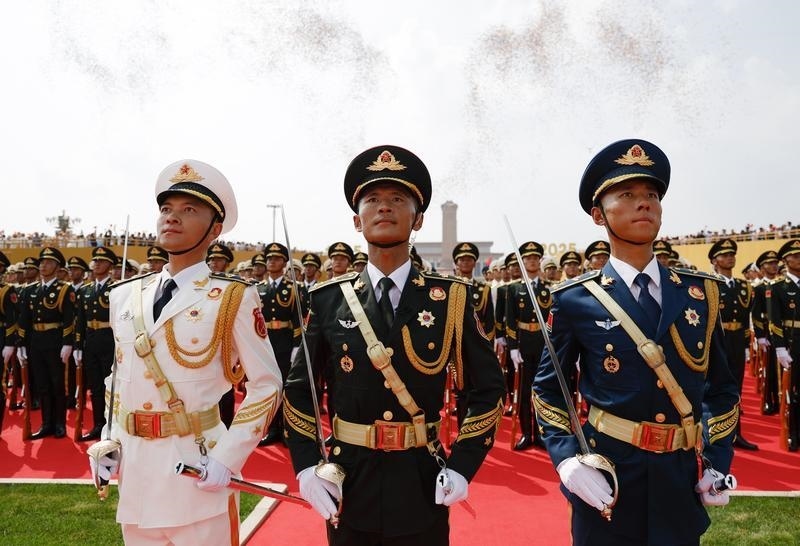 9月3日,紀(jì)念中國人民抗日戰(zhàn)爭暨世界反法西斯戰(zhàn)爭勝利80周年大會(huì)在北京隆重舉行。這是國旗護(hù)衛(wèi)隊(duì)在天安門廣場列隊(duì)。