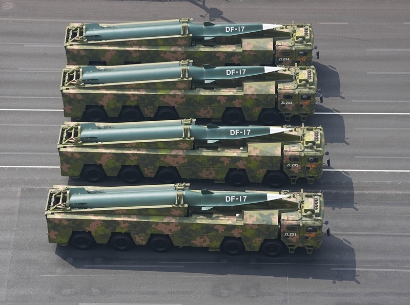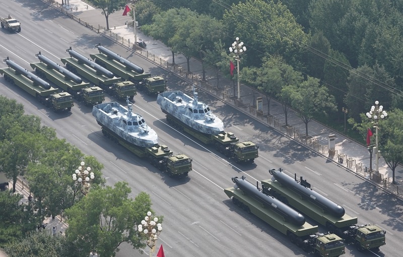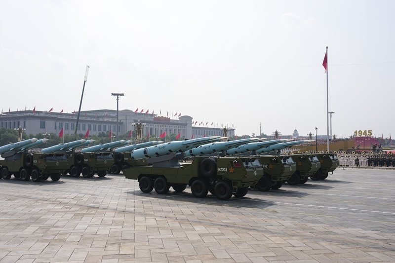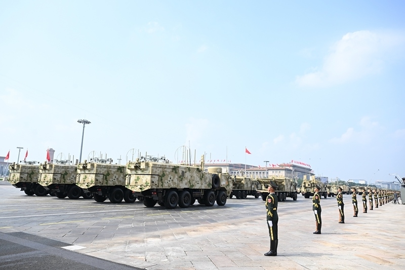 9月3日,紀(jì)念中國人民抗日戰(zhàn)爭暨世界反法西斯戰(zhàn)爭勝利80周年大會在北京隆重舉行。這是高超聲速導(dǎo)彈方隊接受檢閱。