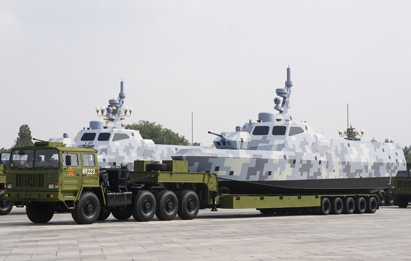 9月3日,紀(jì)念中國人民抗日戰(zhàn)爭暨世界反法西斯戰(zhàn)爭勝利80周年大會在北京隆重舉行。這是海上無人作戰(zhàn)方隊接受檢閱。