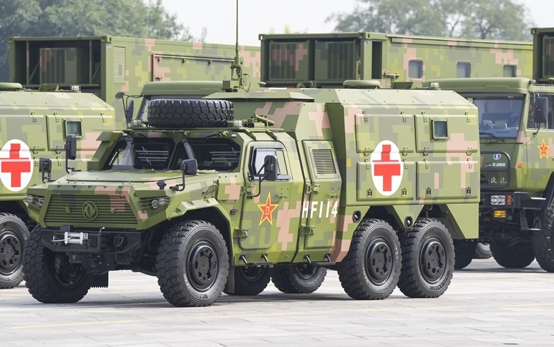 9月3日,紀(jì)念中國人民抗日戰(zhàn)爭暨世界反法西斯戰(zhàn)爭勝利80周年大會在北京隆重舉行。這是后勤保障方隊通過天安門廣場。