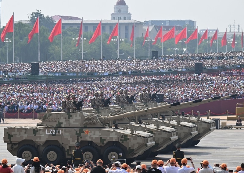 9月3日,紀(jì)念中國人民抗日戰(zhàn)爭暨世界反法西斯戰(zhàn)爭勝利80周年大會在北京隆重舉行。這是信息支援方隊接受檢閱。
