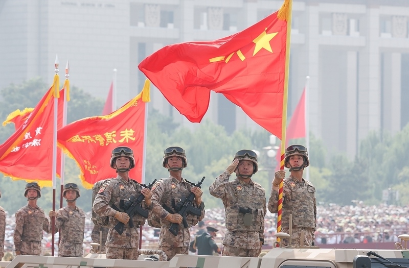 9月3日,紀(jì)念中國人民抗日戰(zhàn)爭暨世界反法西斯戰(zhàn)爭勝利80周年大會在北京隆重舉行。這是儀仗方隊接受檢閱。