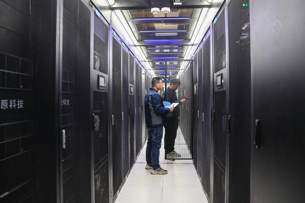 2025年1月6日,工作人員在中國移動(甘肅·慶陽)數(shù)據(jù)中心機(jī)房內(nèi)巡檢。 新華社記者 郎兵兵 攝