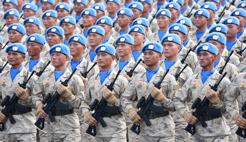 2025年9月3日,紀(jì)念中國人民抗日戰(zhàn)爭暨世界反法西斯戰(zhàn)爭勝利80周年大會在北京隆重舉行。這是維和部隊方隊接受檢閱。新華社記者 王建華 攝