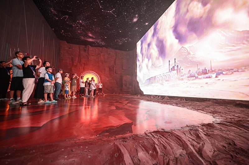 該中心依托中國文昌航天發(fā)射場(chǎng)的區(qū)位優(yōu)勢(shì),以“星辰大?!の牟龁⒑健睘橹黝},系統(tǒng)展現(xiàn)中國航天從追夢(mèng)到圓夢(mèng)的輝煌歷程。經(jīng)過本次改造,該中心的展陳內(nèi)容升級(jí)為覆蓋航天歷史、火箭發(fā)射、空間科學(xué)、未來探索等多維主題的沉浸式體驗(yàn)體系。