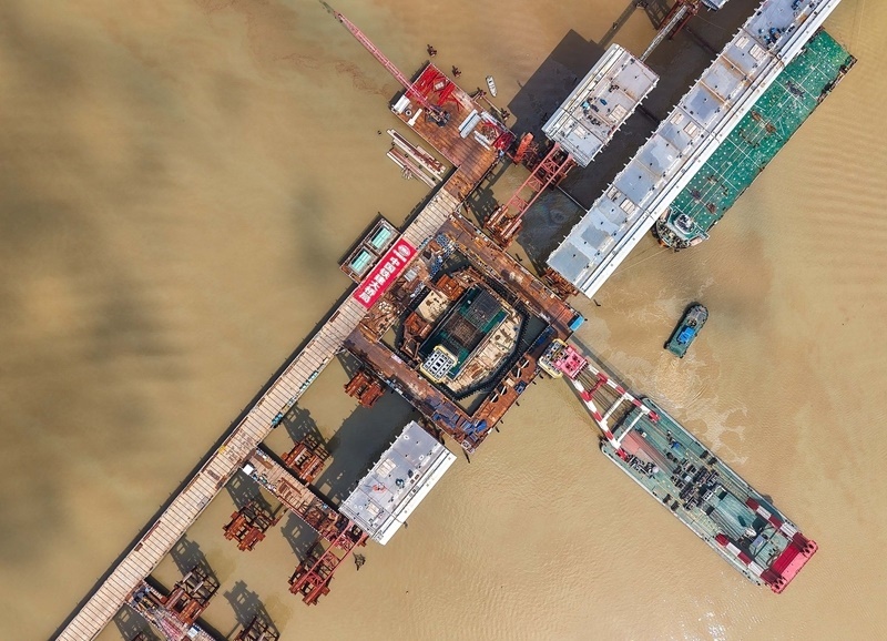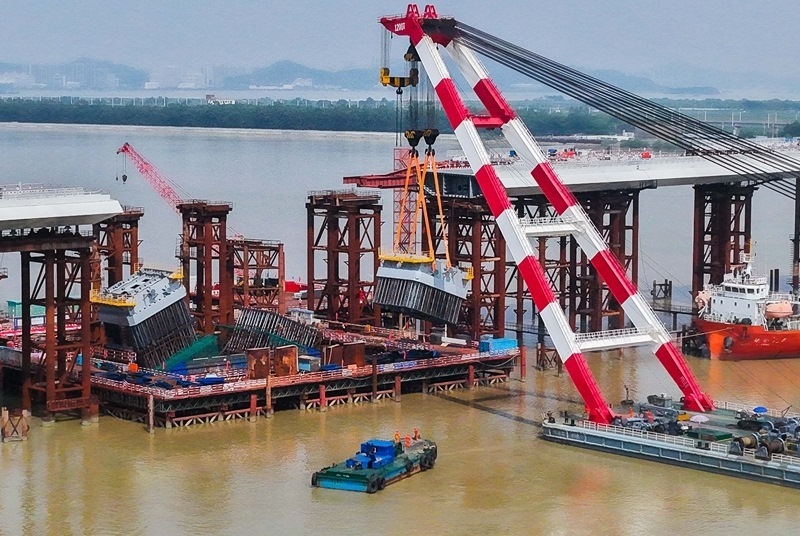 10月10日,由中鐵建大橋局承建的萬龍大橋吊裝架設(shè)首節(jié)段主塔。位于廣州南沙區(qū)的萬龍大橋跨越珠江口龍穴南水道,全長5146米,主橋長1150米,主跨608米,為粵港澳大灣區(qū)又一世界級橋梁。