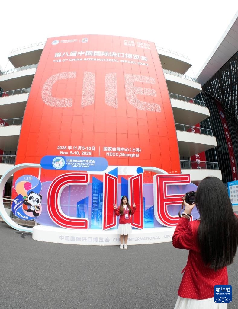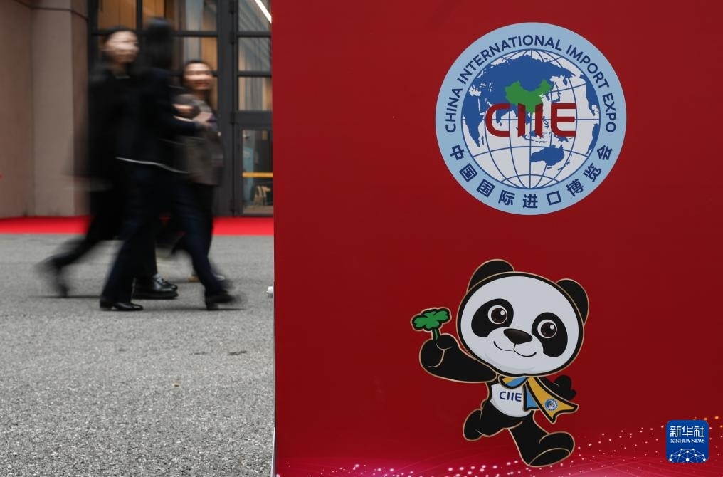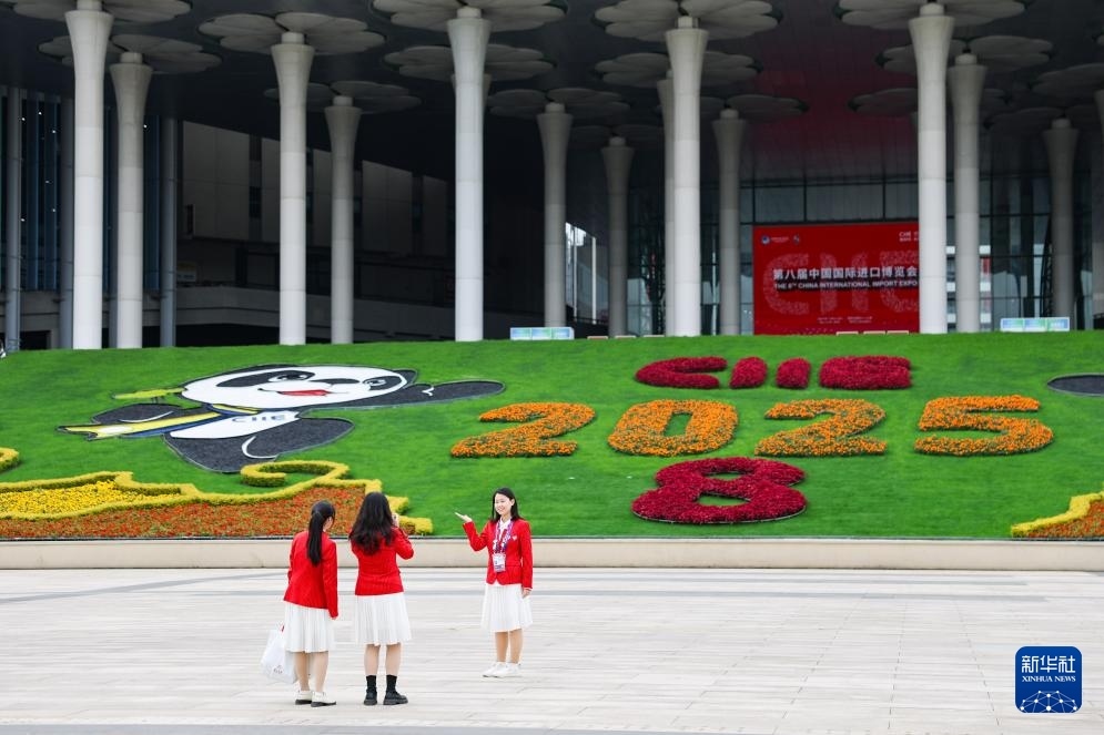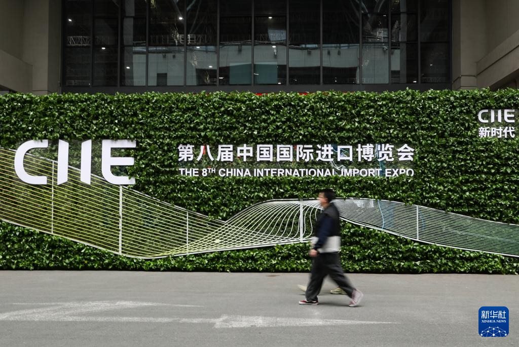 這是11月4日在第八屆進(jìn)博會舉辦場地——國家會展中心(上海)拍攝的進(jìn)博會宣傳標(biāo)識。