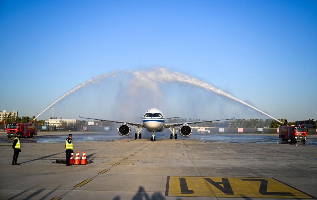 新華社天津11月9日電(記者王聿昊、劉惟真)11月9日,國(guó)航C919重飛“兩航起義”航線主題航班從香港飛抵天津,重溫76年前“兩航起義”的北飛航程,致敬“兩航起義”愛國(guó)壯舉。