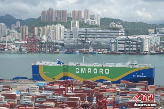 2025年9月28日,全球首艘9300CEU(標(biāo)準(zhǔn)車(chē)位)甲醇雙燃料動(dòng)力滾裝船“港榮”輪(“CM HONG KONG”輪)首航香港儀式在香港舉行。圖為“港榮”輪。(資料圖) 中新網(wǎng)記者 陳永諾 攝