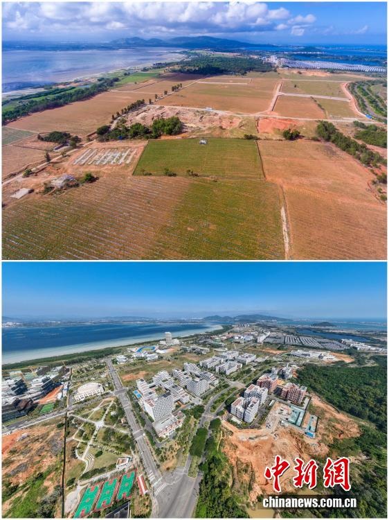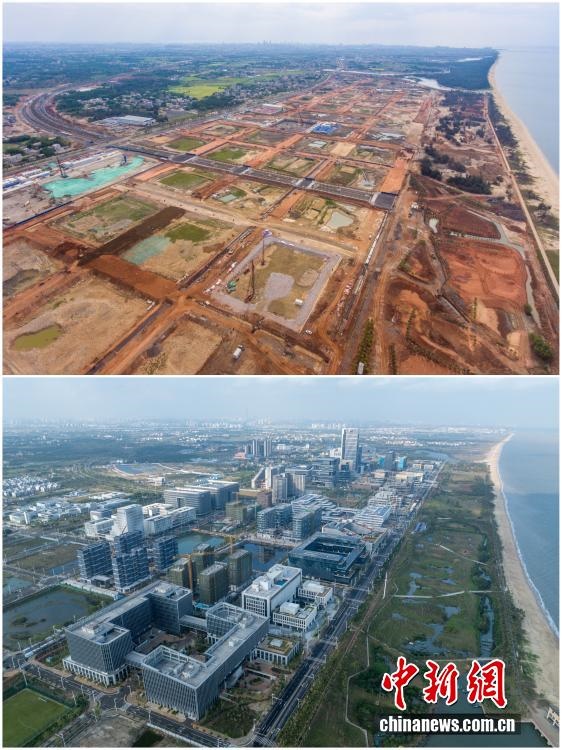 2025年12月18日,海南自由貿(mào)易港正式啟動(dòng)全島封關(guān)。近年來(lái),海南自貿(mào)港建設(shè)在利好政策帶動(dòng)下不斷刷新“自貿(mào)港速度”,一個(gè)個(gè)重大項(xiàng)目、重點(diǎn)園區(qū)拔地而起,直觀呈現(xiàn)海南自貿(mào)港的蓬勃生機(jī)。這里正成為中國(guó)對(duì)外開放的新前沿、互利合作的新熱土和推動(dòng)經(jīng)濟(jì)全球化的新引擎。上資料圖為2020年8月19日俯瞰三亞崖州灣科技城高新區(qū)建設(shè)現(xiàn)場(chǎng),下資料圖為2025年12月9日已初具規(guī)模的三亞崖州灣科技城高新區(qū)。(拼版圖,無(wú)人機(jī)照片)