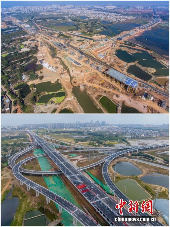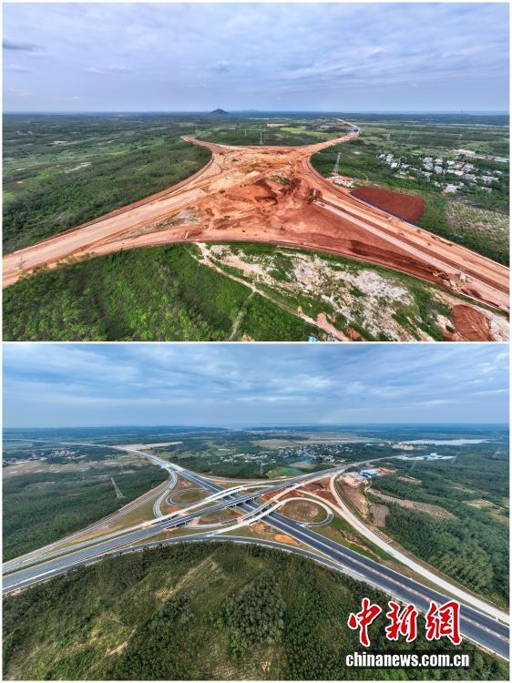 2025年12月18日,海南自由貿(mào)易港正式啟動(dòng)全島封關(guān)。近年來(lái),海南自貿(mào)港建設(shè)在利好政策帶動(dòng)下不斷刷新“自貿(mào)港速度”,一個(gè)個(gè)重大項(xiàng)目、重點(diǎn)園區(qū)拔地而起,直觀呈現(xiàn)海南自貿(mào)港的蓬勃生機(jī)。這里正成為中國(guó)對(duì)外開放的新前沿、互利合作的新熱土和推動(dòng)經(jīng)濟(jì)全球化的新引擎。上資料圖為2021年2月6日正在建設(shè)中的G15沈海高速公路海口段項(xiàng)目海秀互通,下資料圖為2022年12月28日G15沈海高速公路??诙谓ǔ赏ㄜ?。(拼版圖,無(wú)人機(jī)照片)