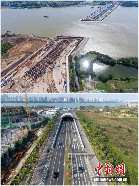 2025年12月18日,海南自由貿(mào)易港正式啟動(dòng)全島封關(guān)。近年來(lái),海南自貿(mào)港建設(shè)在利好政策帶動(dòng)下不斷刷新“自貿(mào)港速度”,一個(gè)個(gè)重大項(xiàng)目、重點(diǎn)園區(qū)拔地而起,直觀呈現(xiàn)海南自貿(mào)港的蓬勃生機(jī)。這里正成為中國(guó)對(duì)外開放的新前沿、互利合作的新熱土和推動(dòng)經(jīng)濟(jì)全球化的新引擎。上資料圖為2019年6月19日的海口文明東越江隧道施工現(xiàn)場(chǎng),下資料圖為2025年12月7日已建成通車的海南省首條跨越南渡江隧道——文明東隧道。(拼版圖,無(wú)人機(jī)照片)