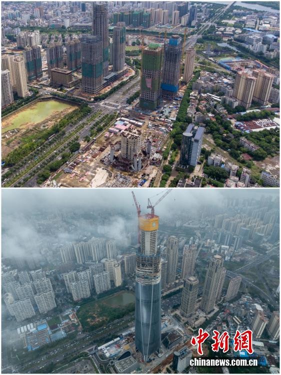 2025年12月18日,海南自由貿(mào)易港正式啟動(dòng)全島封關(guān)。近年來(lái),海南自貿(mào)港建設(shè)在利好政策帶動(dòng)下不斷刷新“自貿(mào)港速度”,一個(gè)個(gè)重大項(xiàng)目、重點(diǎn)園區(qū)拔地而起,直觀呈現(xiàn)海南自貿(mào)港的蓬勃生機(jī)。這里正成為中國(guó)對(duì)外開放的新前沿、互利合作的新熱土和推動(dòng)經(jīng)濟(jì)全球化的新引擎。上資料圖為2020年8月21日因故停工的“海南第一高樓”海南中心項(xiàng)目,下資料圖為2025年12月16日海南中心項(xiàng)目順利完成塔樓核心筒結(jié)構(gòu)封頂。(拼版圖,無(wú)人機(jī)照片)