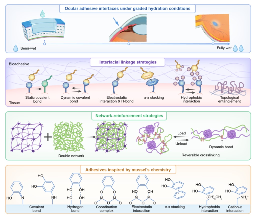研究團(tuán)隊介紹,眼科粘合材料分為眼表粘合和眼底粘合兩大類,針對性解決不同眼部區(qū)域的治療需求。對于角膜等眼表疾病,“生物膠水”已展現(xiàn)出亮眼潛力,能實現(xiàn)無縫線角膜移植,填充修復(fù)大范圍角膜缺損,即便在濕潤、滲血的復(fù)雜創(chuàng)面上也能即時封閉,可大幅拓展眼表修復(fù)的適用場景,提升治療效果。