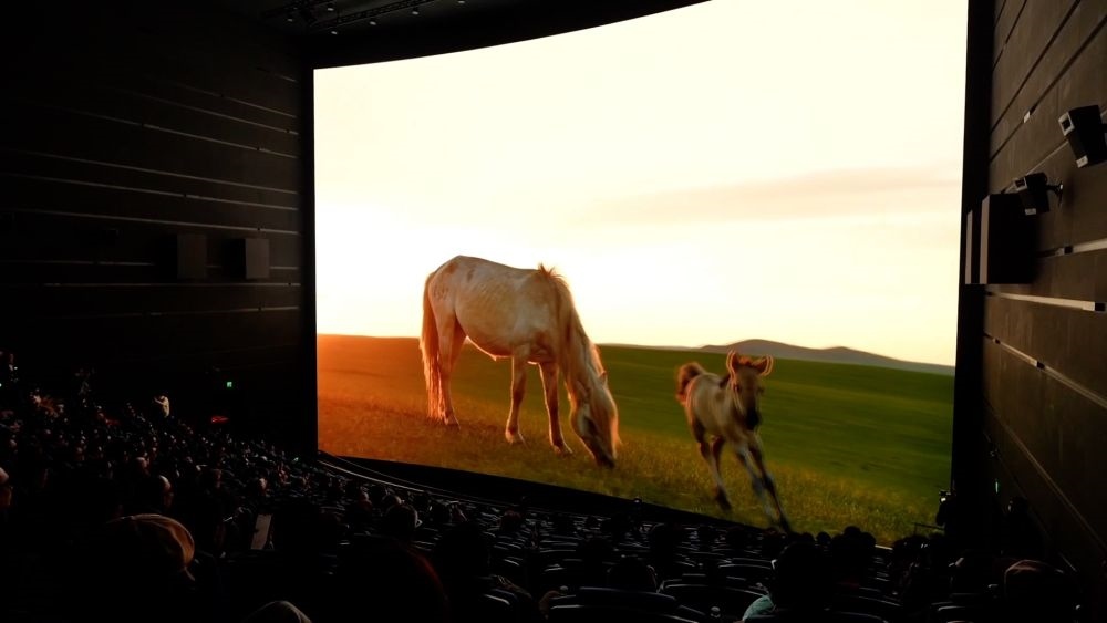 近日,全球首部生肖動(dòng)物巨幕電影《馬到功成》在上海科技館內(nèi)巨幕影院舉行首映。該屏幕融合4K、3D、高幀率等多項(xiàng)技術(shù),同時(shí)也應(yīng)用了中影集團(tuán)新一代的CLED透聲屏方案。