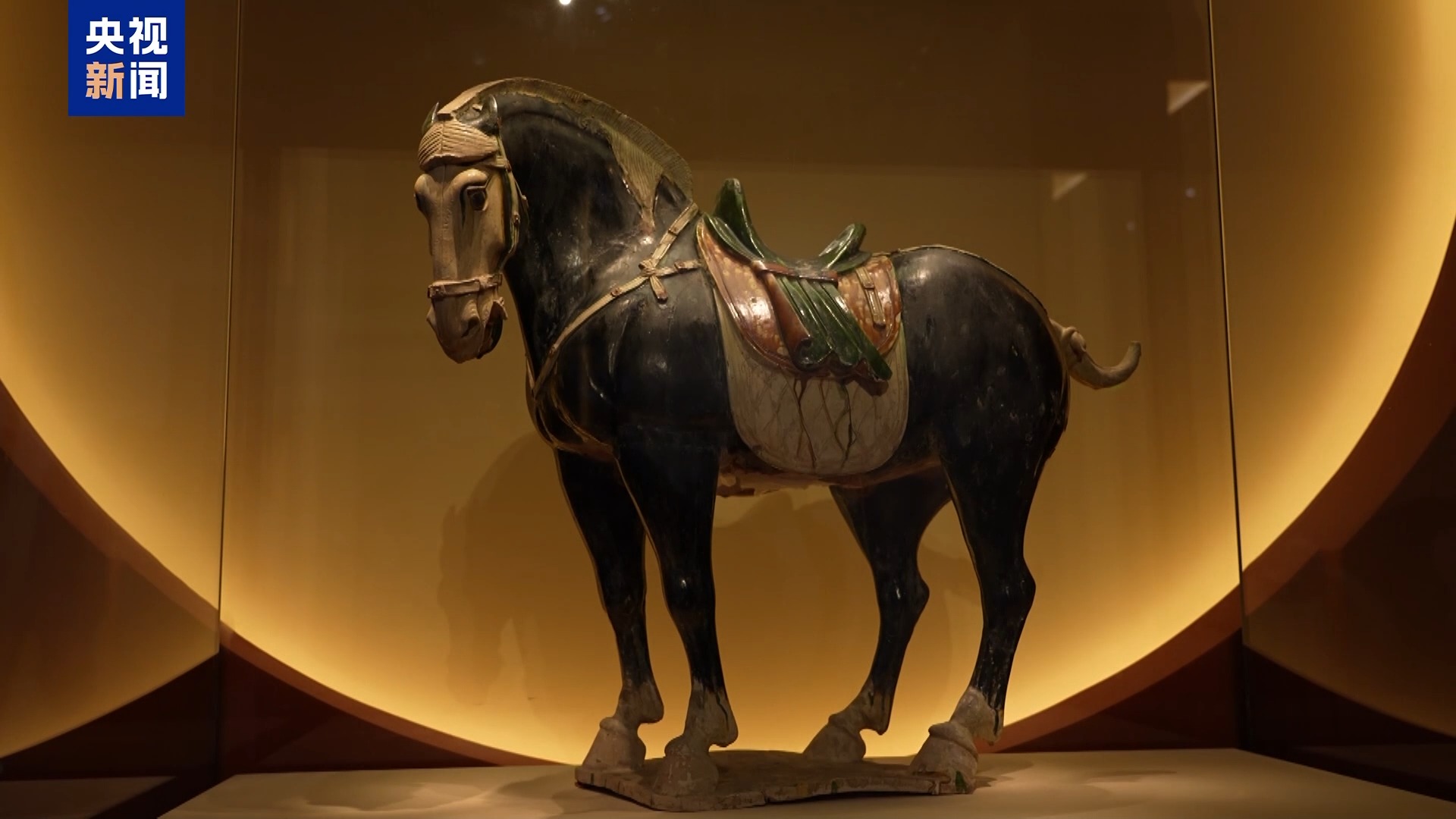 國(guó)家博物館館員、策展人 許文珺:它一改漢代時(shí)期古拙平穩(wěn)的風(fēng)格,展現(xiàn)出了唐馬的風(fēng)范。它是唐三彩中難得的一件黑釉精品,也是我們國(guó)博的鎮(zhèn)館之寶之一。