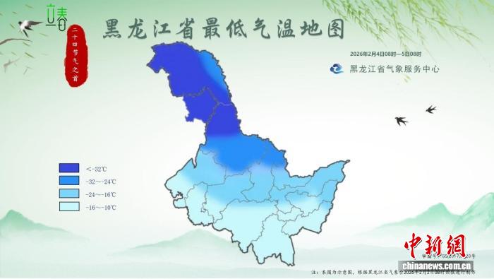 2026年“立春首日”黑龍江省最低氣溫地圖(2026年2月4日8時(shí)至5日8時(shí))。 黑龍江省氣象局供圖