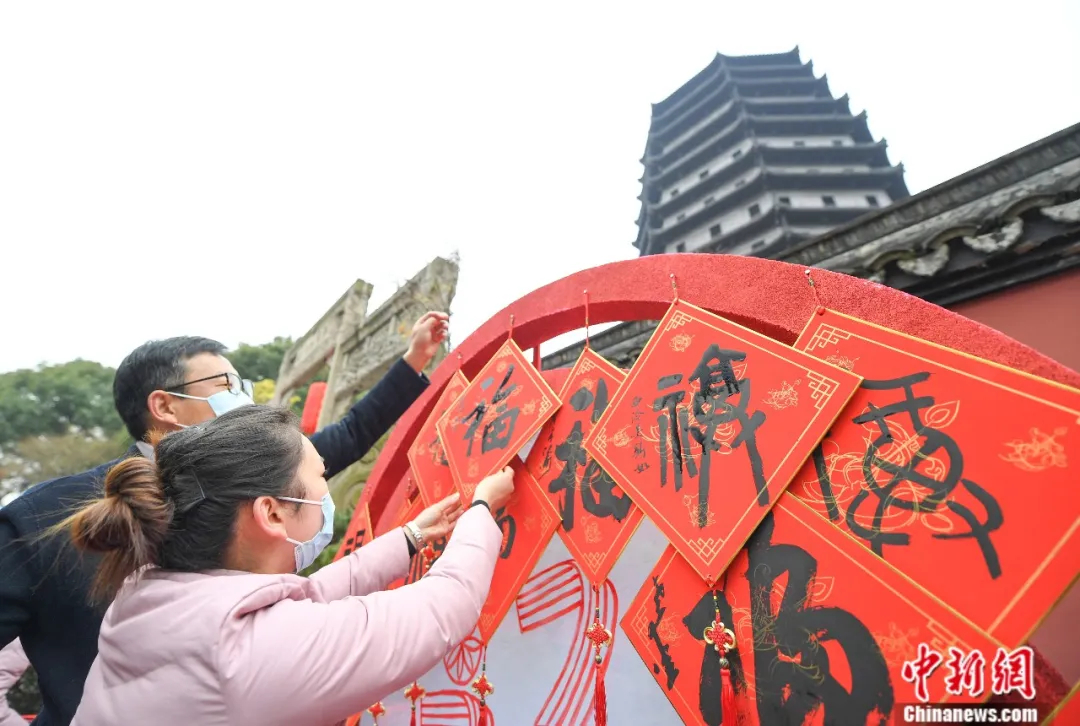 2026年1月18日,重大歷史題材電視劇《太平年》全球啟航發(fā)布會在浙江杭州錢王祠內(nèi)舉行。圖為游客在錢王祠外拍照留念。中新社記者 曹丹 攝
