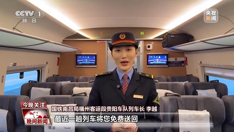 國鐵南昌局福州客運(yùn)段貴陽車隊(duì)列車長 李越:您只需要找到列車的工作人員,出示身份證件,列車長核驗(yàn)好身份信息,開具客運(yùn)記錄。又有旅客問,我下車的時(shí)候該找誰呢,您先別著急,列車長會(huì)在最近的前方站將您交接下車,車站的工作人員會(huì)安排最近一趟列車將您免費(fèi)送回。