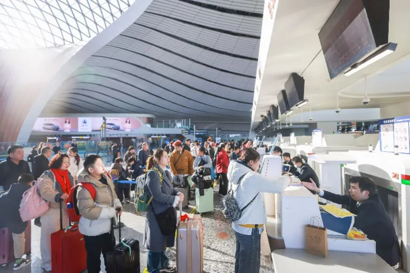 2026年2月2日,旅客在北京大興國(guó)際機(jī)場(chǎng)辦理值機(jī)。當(dāng)日,為期40天的2026年春運(yùn)拉開(kāi)帷幕。中新社記者 賈天勇 攝